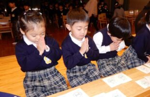 本日、幼稚園ではひと足早く七五三のお祝いをしました。幼稚園の隣にある『カトリ…